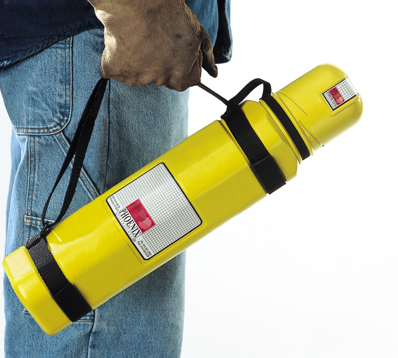 Safetube, Industriell förvaringsbehållare för svetselektroder,vattentät. Färg gul. Safetube är tillgänglig för elektroder i 350 mm eller 450 mm. Med bärrem.