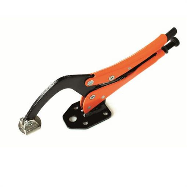 För montering på bordsskiva, arbetsbänk eller svetsbord. Med 5 hål för montering av bordsklämmor. Den rörliga foten håller arbetsstyckena fast utan att skada dem. Med justerskruv och snabbkoppling.