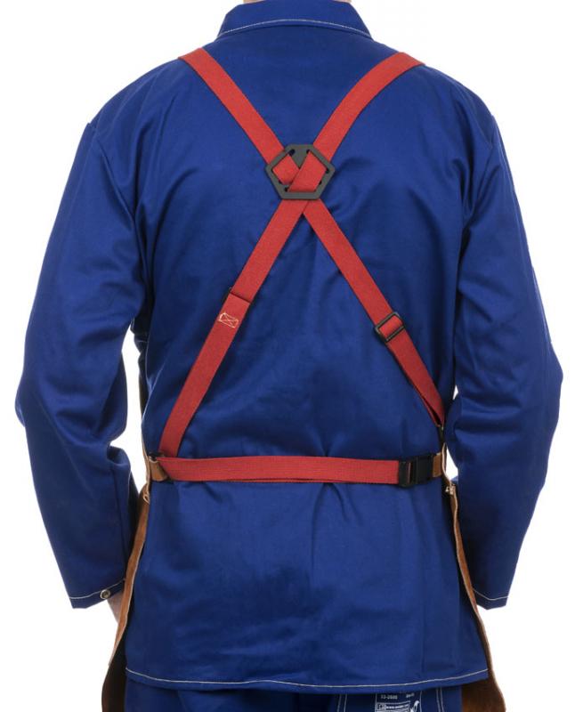 Svetsbyxa i nötspaltläder som är öppen baktill, och med bröstlapp, 122 cm lång