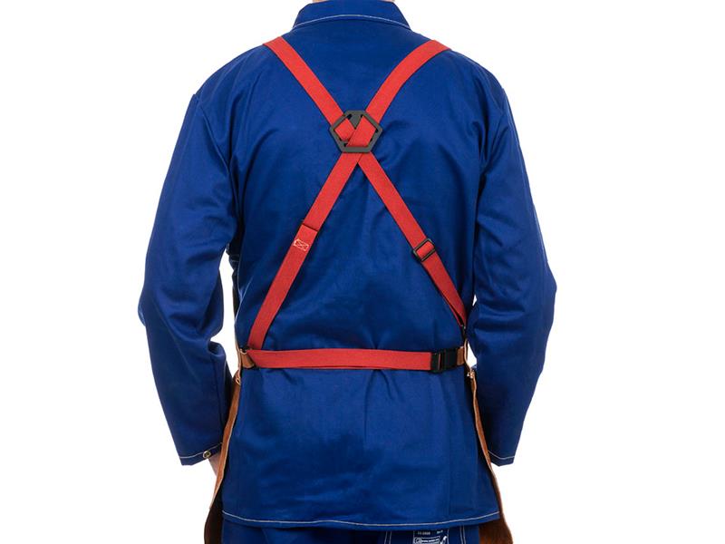 Svetsförkläde i högklassigt nötsidspaltläder, tjocklek min 1mm, bredd 60 cm, Längd 107 cm. Breda, bekväma och stabila remmar. Weldas Lava Brown